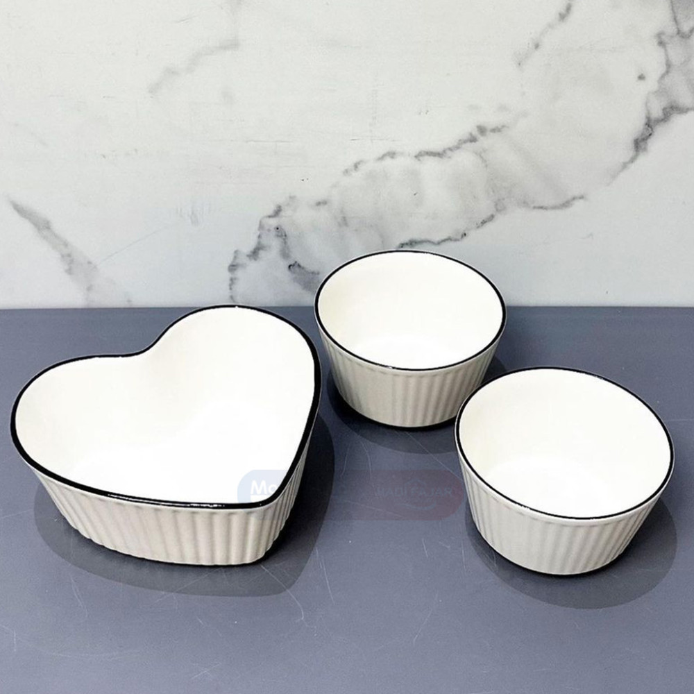 - Desain Simpel dan Aestetik: Satu set terdiri dari 1 mangkok bentuk love dan 2 mangkok bulat, bikin tampilan meja makan jadi lebih menarik dan berkelas. 💖⚪️