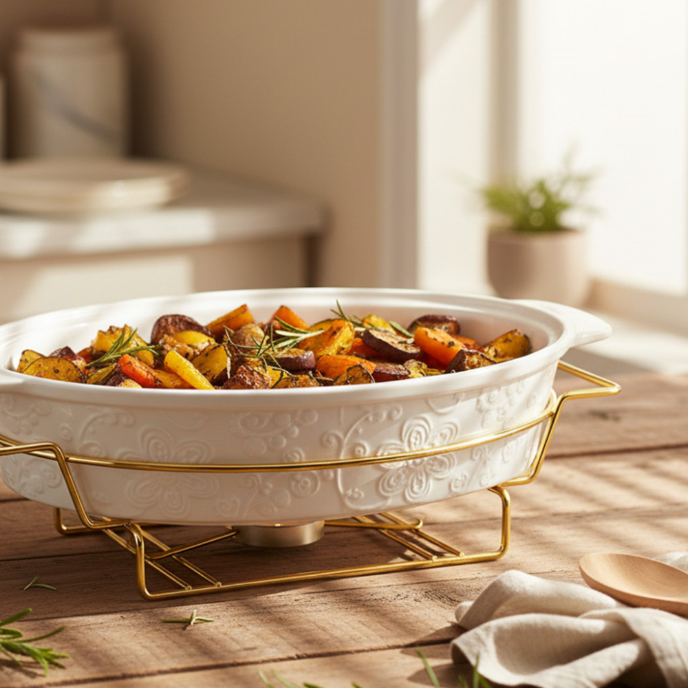 NAKAMI FOOD WARMER OVAL 15` NK-E150C (4) siap jadi bintang di meja makan atau prasmanan Kakak! Beneran deh, ini bukan cuma sekadar penghangat makanan biasa, tapi juga penambah aura mewah di setiap hidangan. Masa iya sih Kakak mau sajian spesial jadi dingin dan nggak menarik? Ihh annoying banget deh kak kalau tamu dateng, makanan sudah nggak hangat lagi. Betul kan Kak?