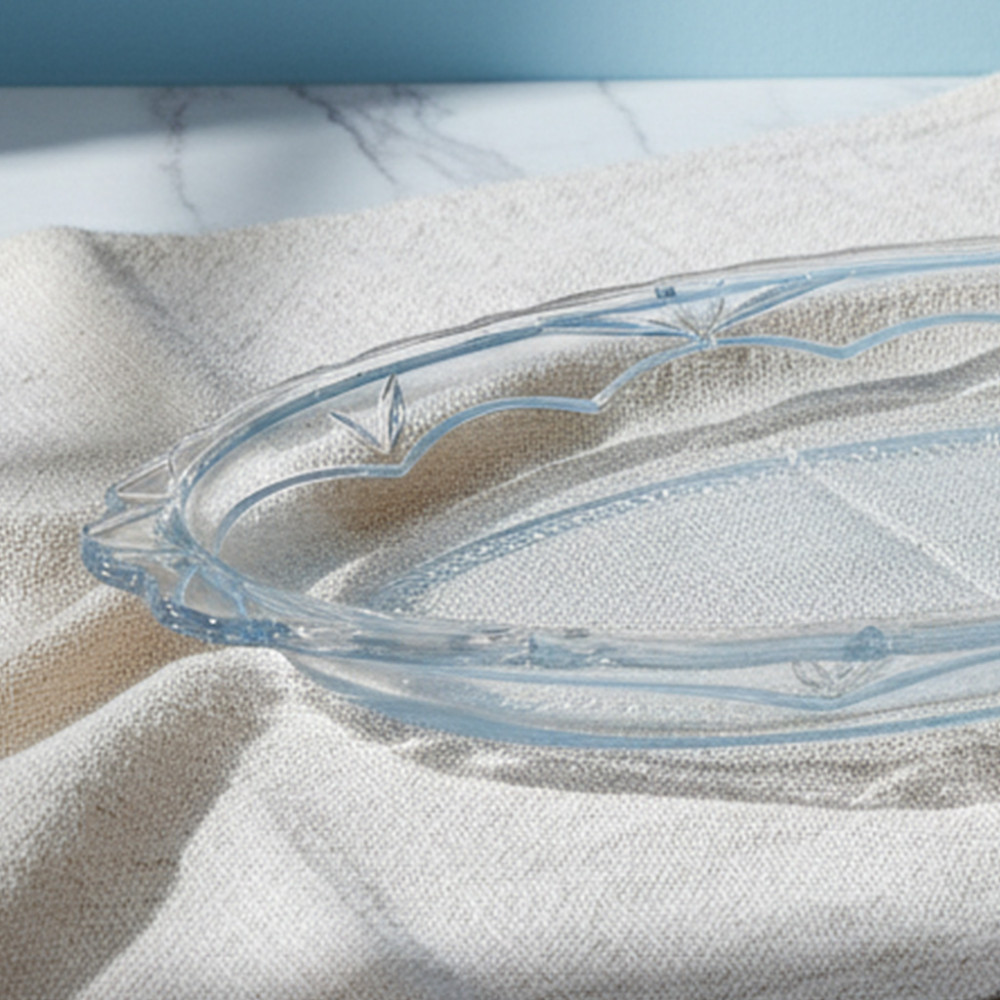 2. Tampilan Mewah dan Bening: Terbuat dari material yang menyerupai kristal, membuat hidangan terlihat mahal tanpa harus khawatir nampan pecah seperti kaca.