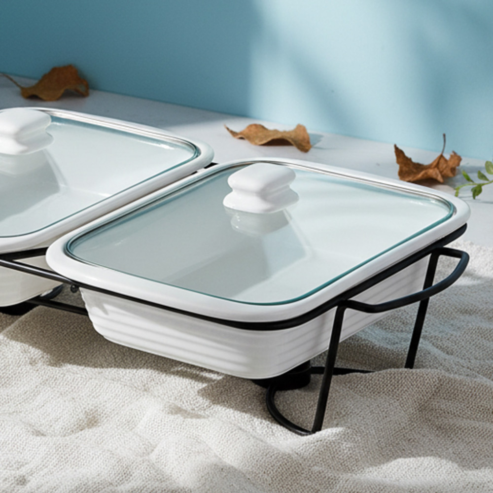 1. Dapat 2 wadah keramik premium (11 Inci atau sekitar 28 cm) plus rak besi penyangga, hemat tempat dan tampilan mewah maksimal.