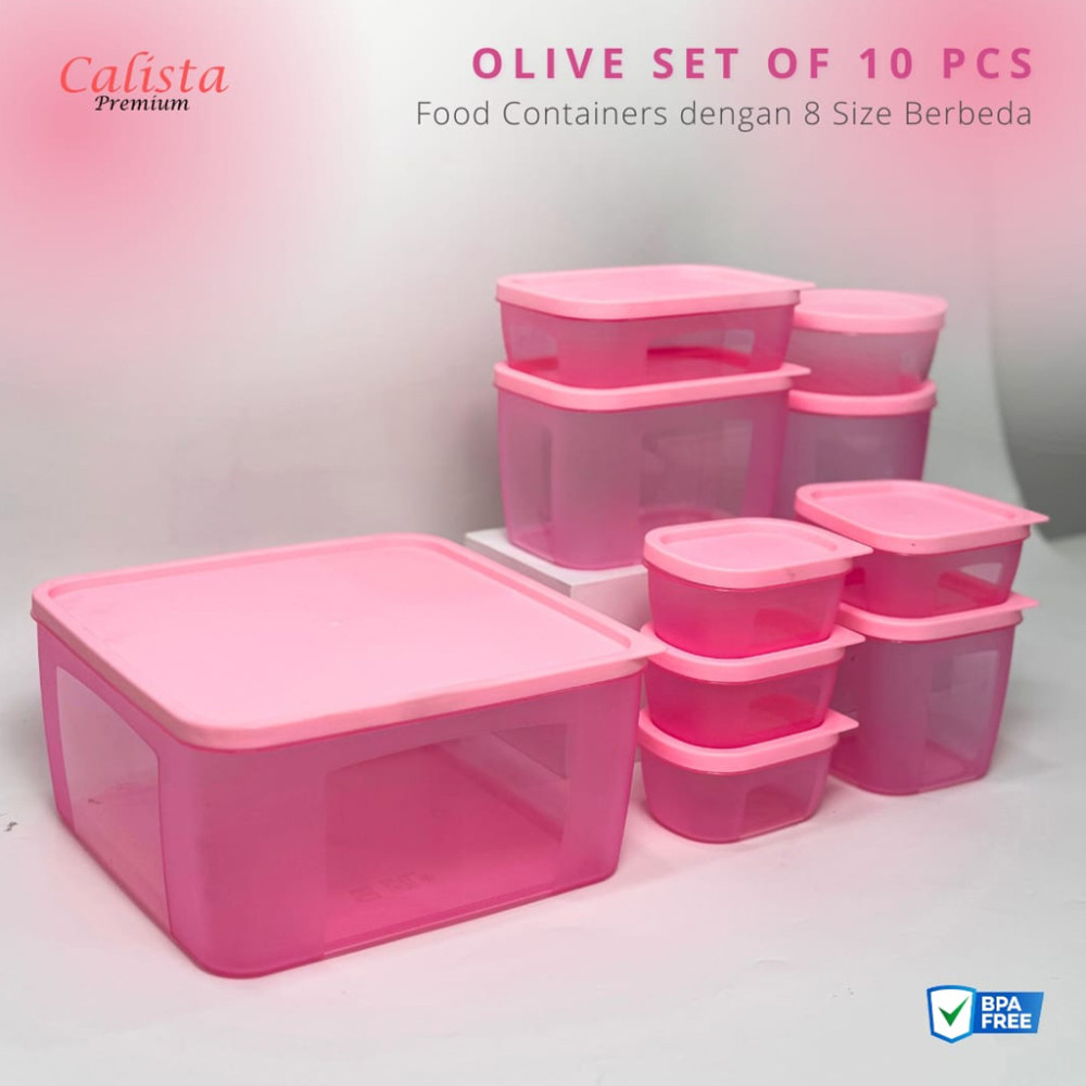 Tuh kan, beneran deh. Mamasuka Kitchenstore punya solusinya! Kenalin, CALISTA SEALWARE OLIVE SET 10 PCS (36), wadah penyimpanan makanan yang bakal jadi life savior kakak di dapur. Satu set langsung dapet 10 pcs dengan 8 ukuran berbeda, super lengkap! Tersedia 5 pilihan warna pastel yang cantik: putih, biru, pink, hijau mint, dan hijau olive. Beneran bikin dapur auto estetik dan rapi! 🥰