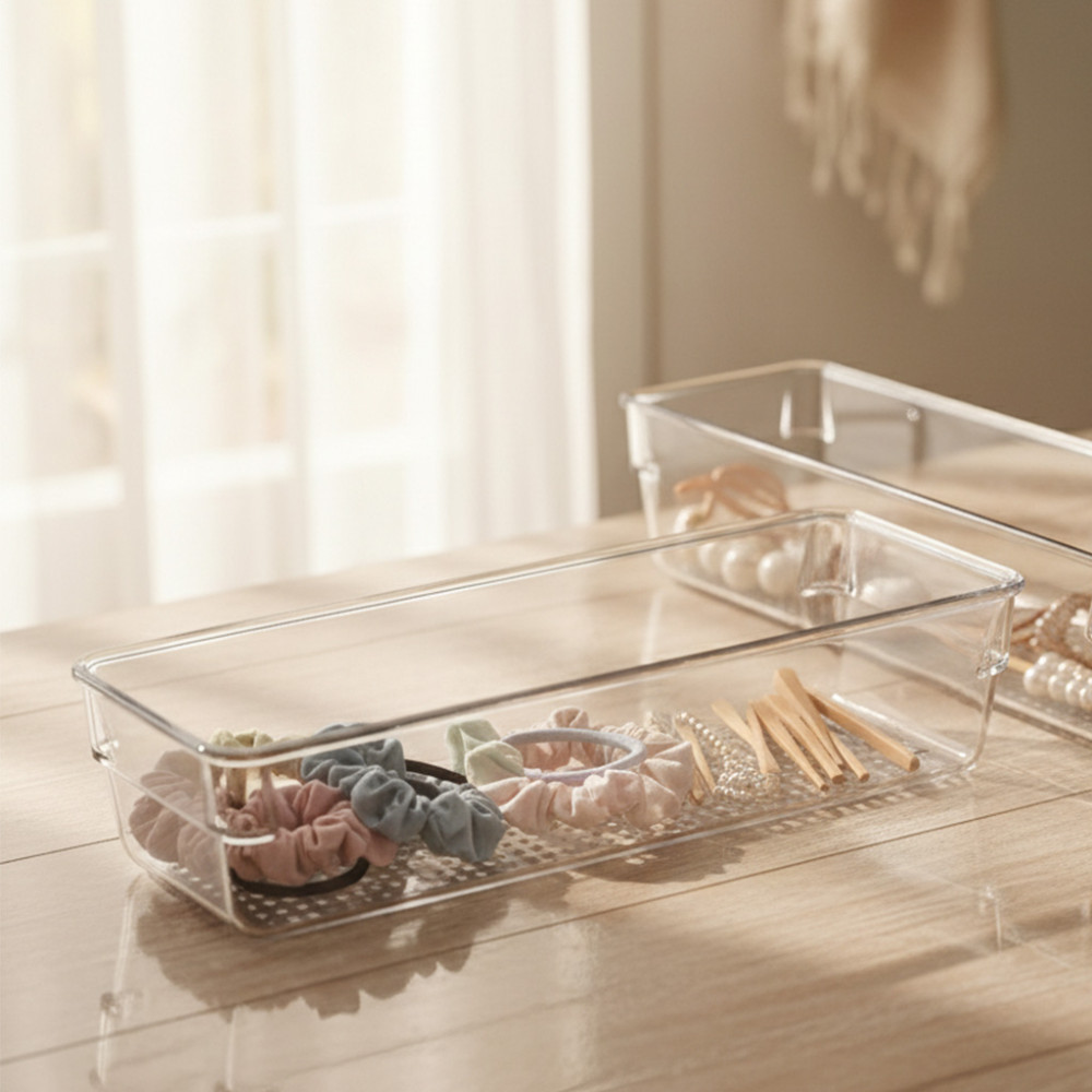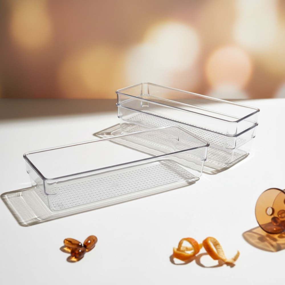1. Material plastik bening premium, kuat dan awet, bikin isinya kelihatan jelas tanpa perlu bongkar-bongkar.