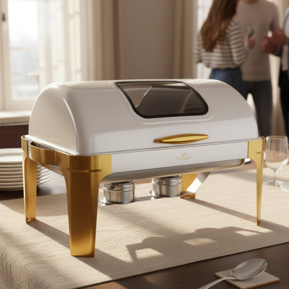Pusing Kak kalau pas ada acara, makanan gampang dingin dan harus bolak-balik panasin? Ihh anoying banget deh Kak! Dengan VICENZA CHAFING DISH ini, drama itu auto bye-bye! Hidangan tetap hangat, Kakak tinggal senyum manis dan nikmati momen. ✨