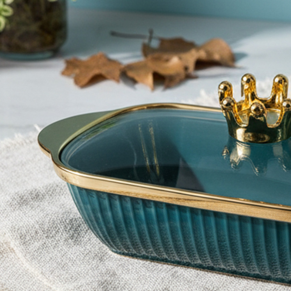 3. Tutup kaca transparan anti belepotan, dan pegangan mahkota emas yang super elegan, bikin hidangan Kakak auto jadi sorotan.