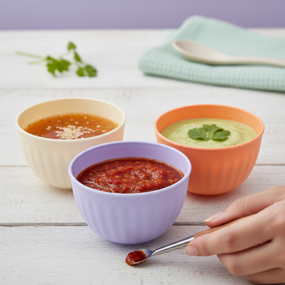 4. Pilihan warna-warni ceria, bikin suasana makan makin asik dan estetik. Mau hijau, ungu, atau orange? Tersedia di MAMASUKA KITCHENSTORE! 🎨