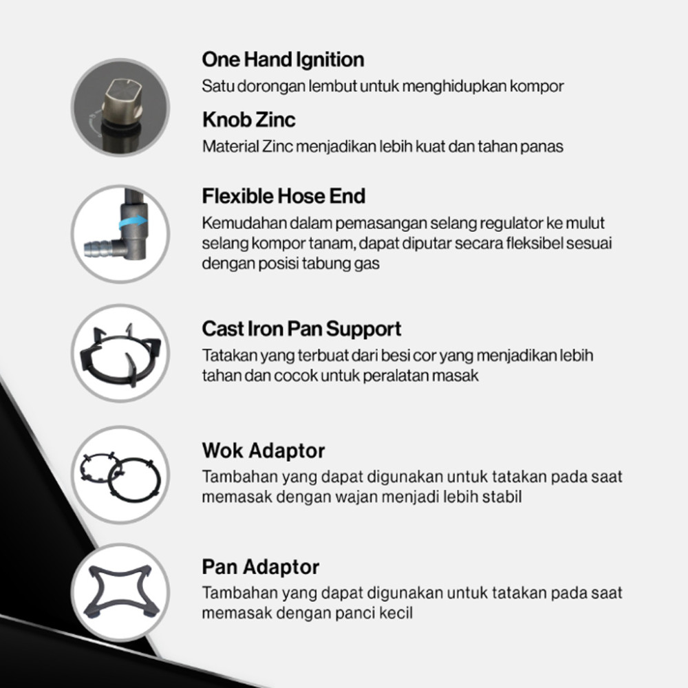 6. Sudah termasuk Wok Adaptor dan Cast Iron Pan Support, siap sedia buat kuali raksasa Kakak!