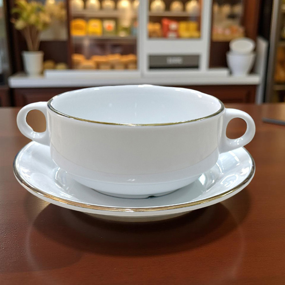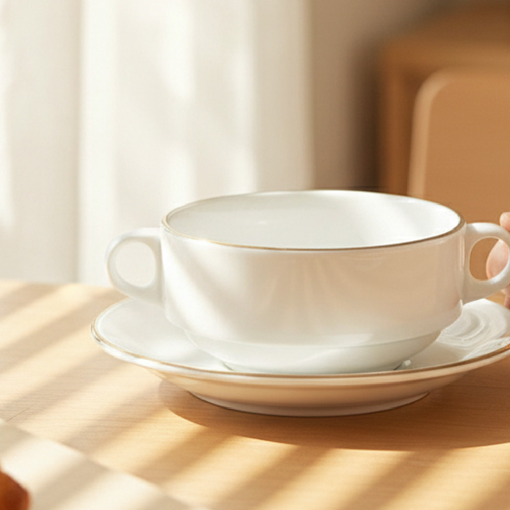 3. Desain klasik dua telinga (handle) untuk memudahkan mengangkat sup panas dan menikmati isinya dengan gaya bangsawan. 👑