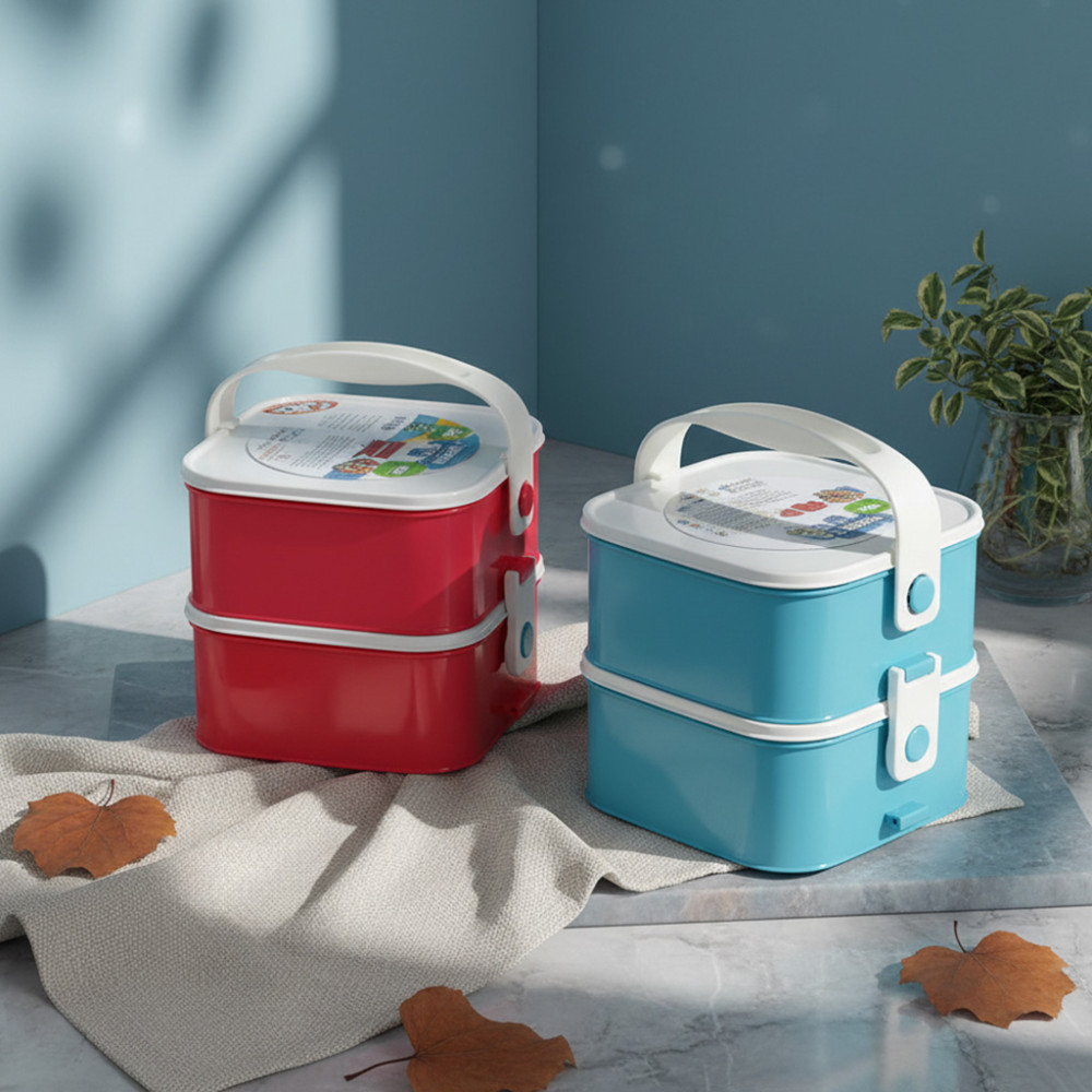 2. Desain dua susun berkapasitas besar. Kakak bisa pisahin nasi, lauk, dan buah dengan mudah. Anti rembes! Iih anoying banget deh kalau bekal jadi campur aduk!