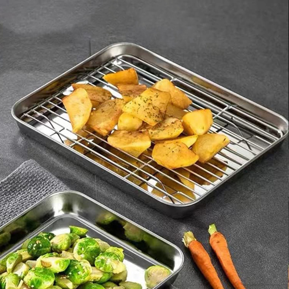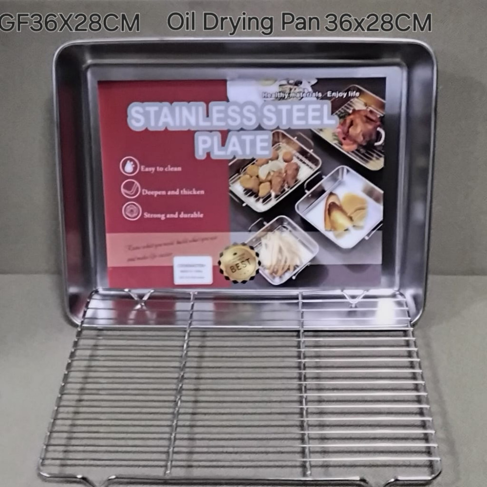 Tuh kan! Gak perlu lagi galau sama makanan yang benyek karena minyak gak turun! COOKMASTER NAMPAN OIL DRYING 36X28CM (24) ini tuh solusi buat kamu yang pengen hasil masakan renyah dan sehat. Desainnya yang ada nampan dan rak kawat bikin minyak atau tetesan lemak bisa langsung turun ke bawah, jadi makanan kamu gak terendam. Beneran deh, cocok buat memanggang ayam, kentang, sayuran, atau bahkan buat naruh gorengan biar gak cepet lembek. Ukuran 36x28cm ini pas banget buat porsi keluarga besar atau acara kumpul-kumpul, ya kan kak?